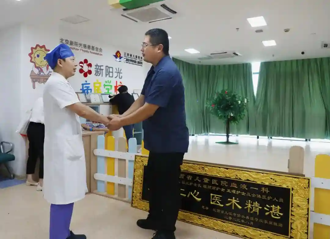 近日,恰逢江西省儿童医院血液一科搬至红谷滩院区两周年之际,血液一科收到该院首例白血病干细胞移植患儿家属送来的一面写着“医者仁心,医术精湛”的牌匾,表达对医护人员精湛技术和悉心护理的感谢。