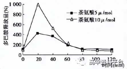 B.由图推测,荼氨酸浓度越大,促进多巴胺释放的作用时间越长