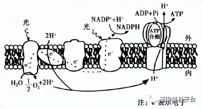 (1)如图表示在栀子的上发生的过程:水分解成O2、H+和e-,光能转化成电能,最终转化为和ATP中活跃的化学能。电子经传递可用于。