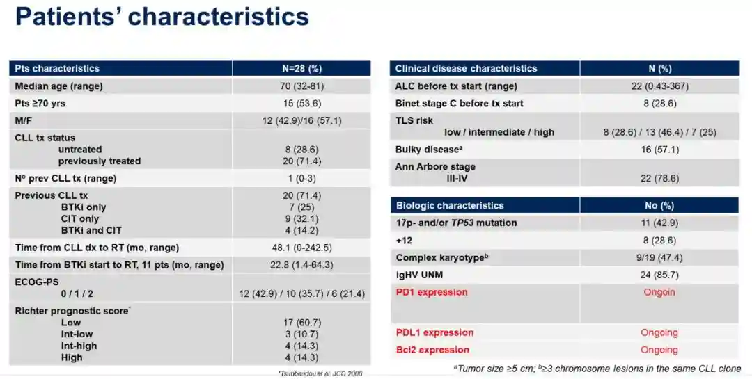 从2019年10月至2022年10月,研究招募了28例DLBCL-RS患者;21例患者可评估缓解。数据截至2023年2月,患者特征见表1。