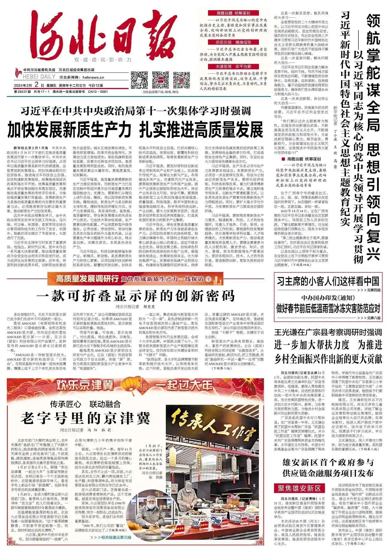 北京市前门大栅栏商业街上,龙年专属的“鱼跃龙门”布鞋摆上了内联升的柜台,挑选新鞋的顾客络绎不绝;在天津市金街上的老美华门店,千层底鞋、津派旗袍、连袖男装等鞋品服饰琳琅满目,各类国风元素尽显传统之美。