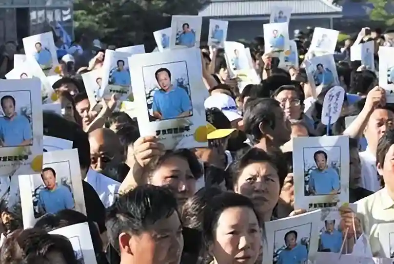 追悼会那天,超5万名群众自发前来送行。