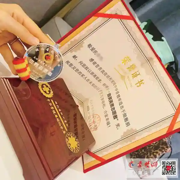 捐献完成后,湖北省红十字会送上“优秀志愿者”纪念章。