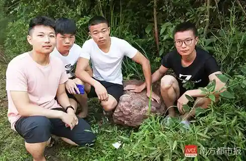 5月11日,江西工业工程职业技术学院的4名学生,黄诚浩、余林鹏、蓝金鑫、章钢洁在横版管理处发现一处疑似蛋类化石的石块。