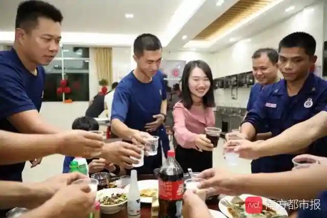 11月17日,蔡建星与爱人刚刚领取了结婚证。当天,单位领导在中队饭堂加菜,邀请新晋家属参加,和兄弟们一起分享他们的幸福和喜悦。