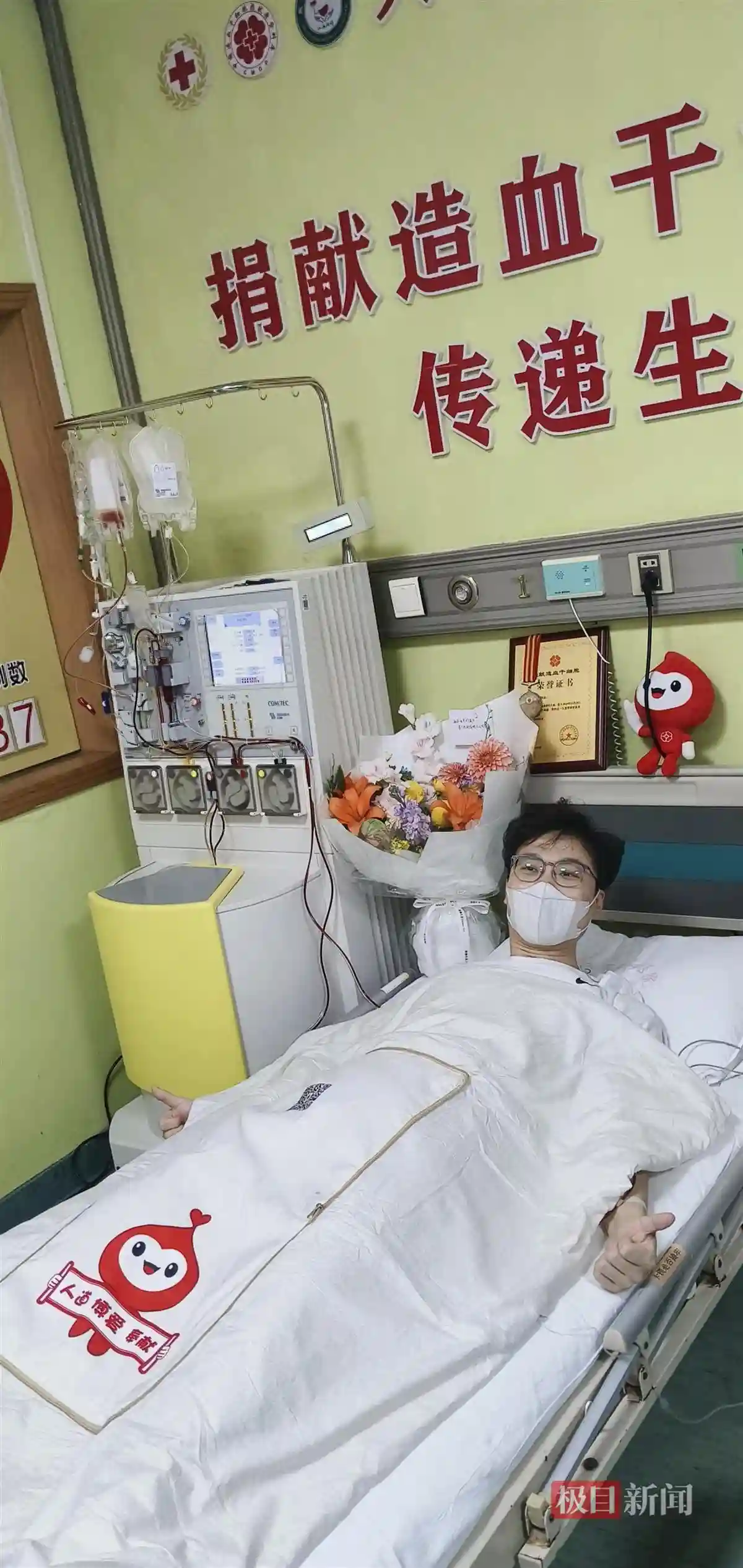 11月28日,造血干细胞捐献顺利进行。经过几个小时的采集,豆豆成功捐献了376毫升造血干细胞混悬液。豆豆也成为全国第18978例、湖北省第687例造血干细胞捐献者。