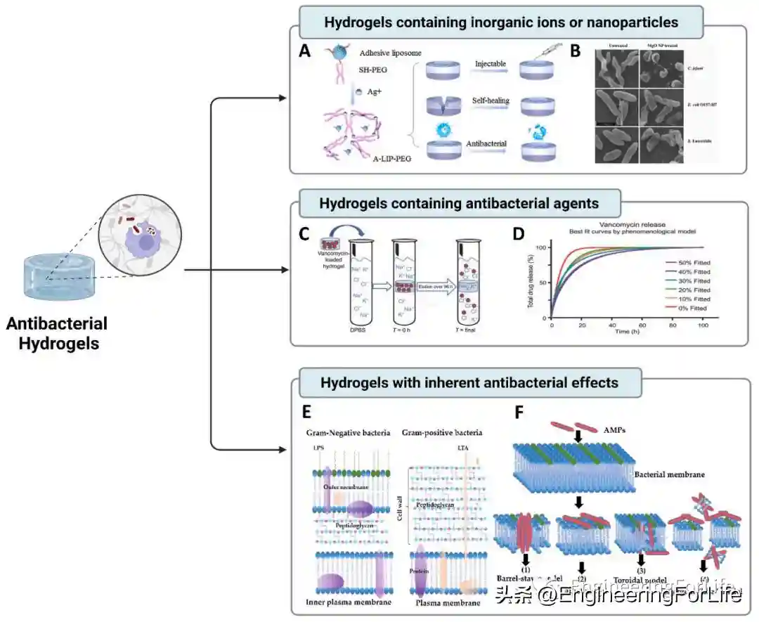 下颌骨参与各种身体活动,如咀嚼、发音、说话和提供机械支持。天然聚合物在植入后容易变形,并在降解过程中导致爆裂降解。本文介绍了几种改性水凝胶,旨在充分应用于下颌再生。与传统的单网络水凝胶相比,双网络(DN)水凝胶是由两种性质不同的聚合物形成的互穿网络,力学性能显著提高,广泛应用于骨,包括下颌骨组织工程。此外,DN水凝胶的复杂网络不影响种子细胞和生长因子的负载和释放,原位胶凝DN海藻酸盐/HA水凝胶可以通过补充不同浓度的HA来调节胶凝速率,以实现可控的机械强度。DN水凝胶还支持BMP-2包封和持续释放,从而大大增强了下颌骨缺损的骨再生。然而,机械增强将不可避免地减缓降解,成分的毒性将是另一个问题。迄今为止,在口腔中已检测到700多种细菌种类,这些细菌生物膜可能导致植入物周围的持续感染,以及严重的牙槽骨吸收。水凝胶可以基于其固有的能力用作抗菌剂的载体。含有无机离子或金属氧化物NP的水凝胶,含有抗菌剂的水凝胶,以及具有固有抗菌效果的水凝胶增强了抗菌性能并长期保持抗菌活性,从而降低了细菌耐药性的可能性(图6)。