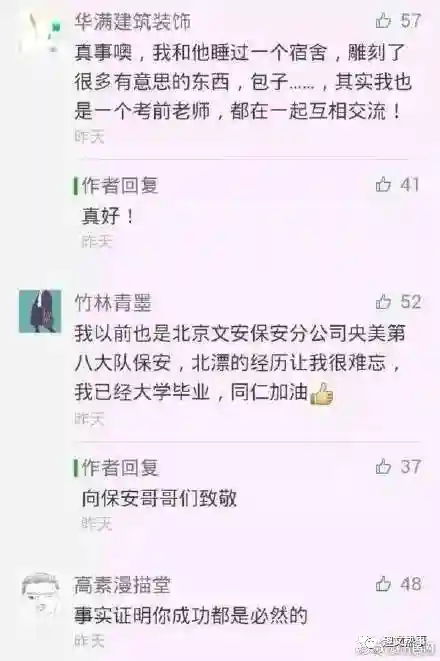 ▲白天背英语,晚上画画的央美保安哥哥背影