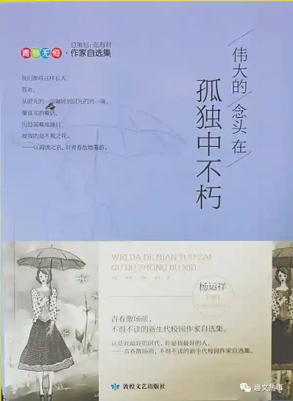捧着散发着墨香的报纸杂志,他看了又看,甚至放在胸口上入睡。再后来,历时7年写的第一本书《伟大的念头在孤独中不朽》由敦煌文艺出版社出版,第一版印刷3000册,第二次印刷2000册。该书进入全国上百家图书馆。