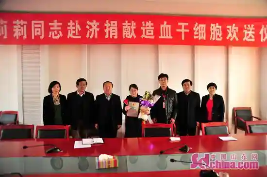 中国山东网聊城频道3月9(通讯员孙桦栋)据了解,聊城市第四人民医院志愿者张莉莉医生造血干细胞配对成功,将于10日赴济南捐献造血干细胞,挽救白血病患者。据悉张莉莉为该院第2例,聊城市第14例,全省第449例捐献者。3月9日下午,聊城市第四人民医院为其举办了欢送仪式,聊城市红十字会主任王磊、聊城四院院长武建胤及领导班子成员参加。