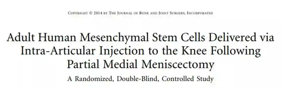 研究人员对55例部分关节切除患者进行关节腔内注射MSCs的研究,实验组患者注射同种异体MSCs,对照组患者注射透明质酸钠。通过VAS及self-Lysholm评估后得出结论,损伤症状得到缓解,1年MRI的追踪检测证实经过MSCs治疗的患者半月板体积显著增加。