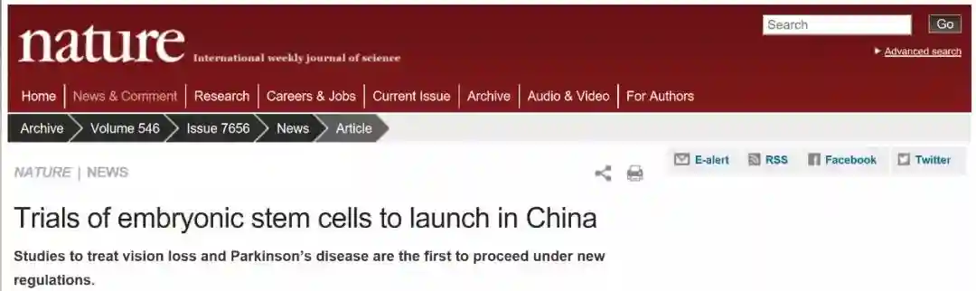 2017年5月,Nature对我国开展基于人胚胎干细胞的临床研究项目进行报道