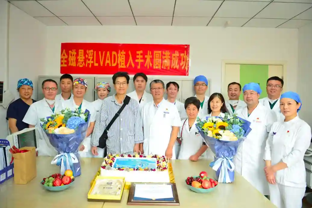 7月11日对47岁的张先生来说是个非常值得纪念的日子,他终于要出院和家人团聚了。看着医务人员为他送上的鲜花和蛋糕,他忍不住红了眼眶:“感谢北京安贞医院给了我第二次生命!”如今已完全行动自如的张先生,此时胸腔里正有力跳动着一颗“人工心脏”。作为一名扩张性心肌病危重症患者,一个月之前,张先生成功接受了全国首例获国家药监局(NMPA)批准的全磁悬浮式“人工心脏”植入术。这标志着北京安贞医院终末期心衰患者救治能力已达国际先进水平。