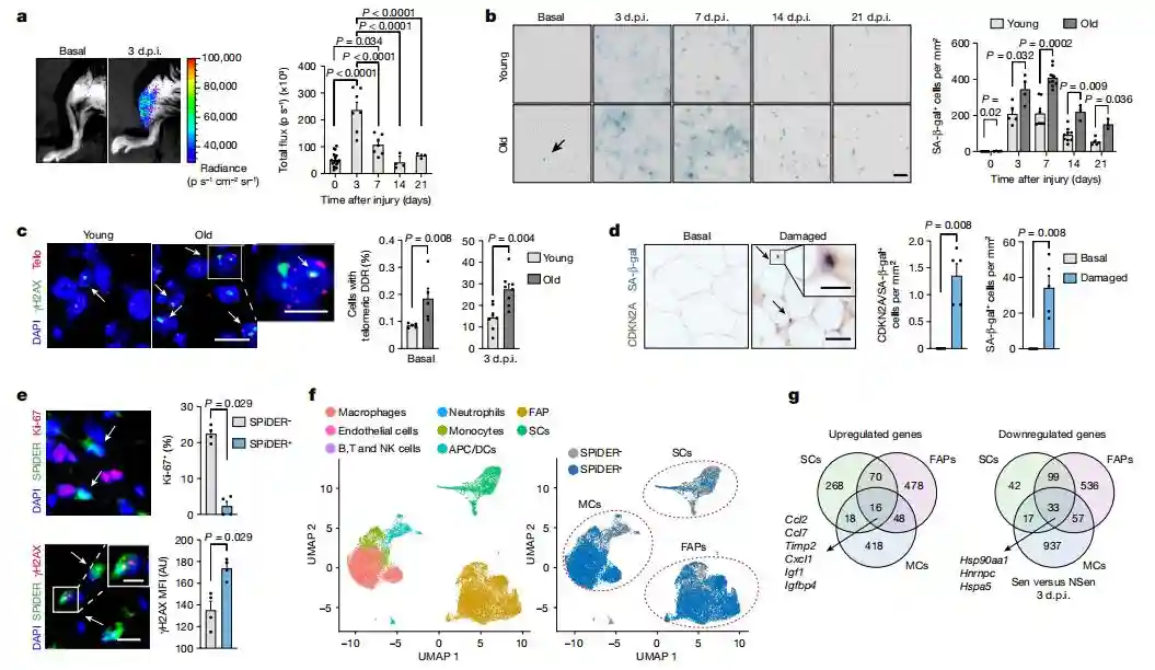 他们发现,在损伤后老化的组织中,衰老细胞比年轻组织中的衰老细胞要多得多。