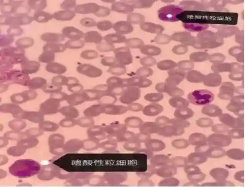 以上病例,从病历上可知6月11日白细胞开始持续升高(没有提供白细胞分类数据),8月18日检查血常规显示白细胞总数,嗜碱粒细胞比例和未成熟粒细胞比例增高,结合血涂片提示CML可能。对于检验工作者,准确的提示可以帮助临床医生有目的地选择检查项目;对于临床医生,诊断明确可以更快地为患者提供相应的治疗;对于患者,及时找出病因接受甲磺酸伊马替尼治疗,目前情况良好。