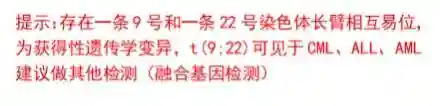 本案例患儿白细胞数持续升高两个多月,最高可达39.8×109/L,且外周血晚幼粒细胞及嗜碱粒细胞多见,符合CML外周血特点。患儿虽无CML常见症状(肝脾大),但临床医生根据外周血涂片的建议进行骨髓细胞学、染色体和融合基因检查。