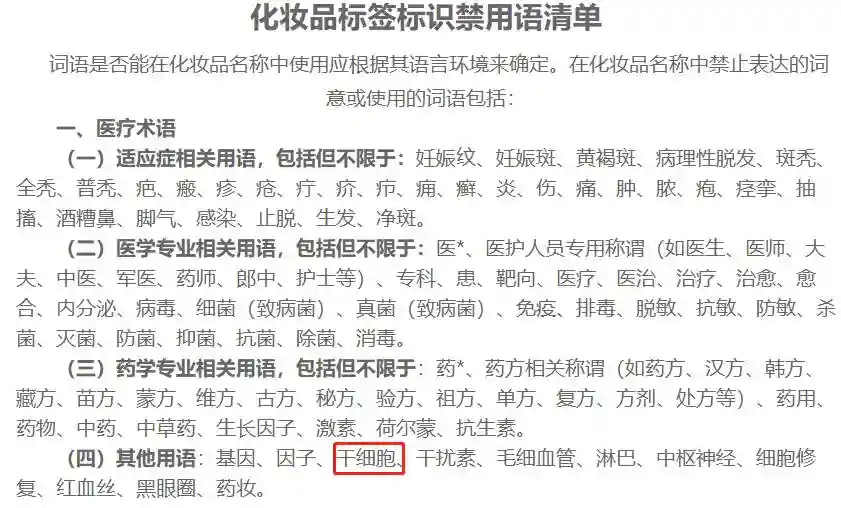 我国《化妆品标签标识禁用语清单》明确指出,化妆品严禁使用“干细胞”等词语。所以,如果商家宣称自己的护肤品含有干细胞,那就有理由怀疑他的生产途径是否正当了。