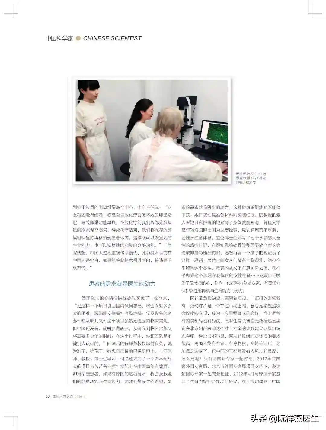 阮祥燕教授决定向医院做汇报。“汇报的时候我有一张幻灯片是一个车往山坡上爬,意思是希望这次会议能够立项,成为一次里程碑式的会议。当时尽管有的院领导也有异议,但时任院长曹连元教授还是决定在北京妇产医院这个寸土寸金的地方建立卵巢组织冻存库。选址很不容易,因为卵巢组织对环境的要求很高,周围不能有有害、有毒物质。多轮论证后,地址算是选定了。但中国的工程师没有人见过卵巢库,怎么建呢?只有请国际专家一起讨论。2012年在国家外国专家局、北京市外国专家局项目支持下,邀请到国际专家一起充分论证,2012年4月与德国专家签订了生育力保护合作项目协议,终于成功建立了中国第一个卵巢组织冻存库,《》对此进行了报道。但怎么具体实施呢?如果有一个环节出了问题,可能满盘皆输。”